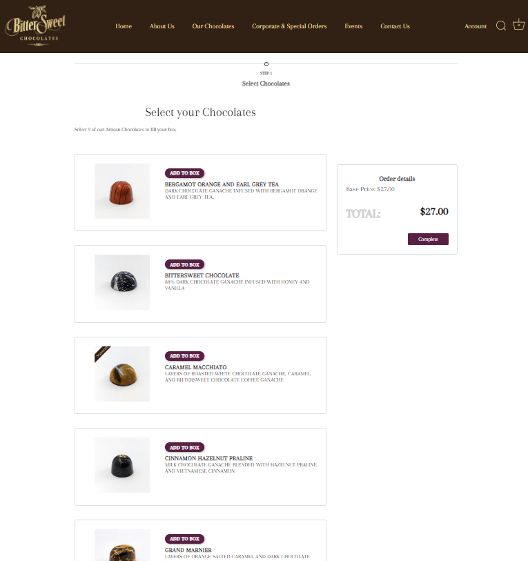 While working with Bittersweet, we recognized the potential to offer a more personalized shopping experience. Our answer was the “build-a-box” feature: an interactive tool allowing users to customize their candy orders to fit their exact preferences. We intricately designed the interface to be user-friendly, guiding customers through the delightful process of selecting their favorite treats and watching their candy box come to life on screen.