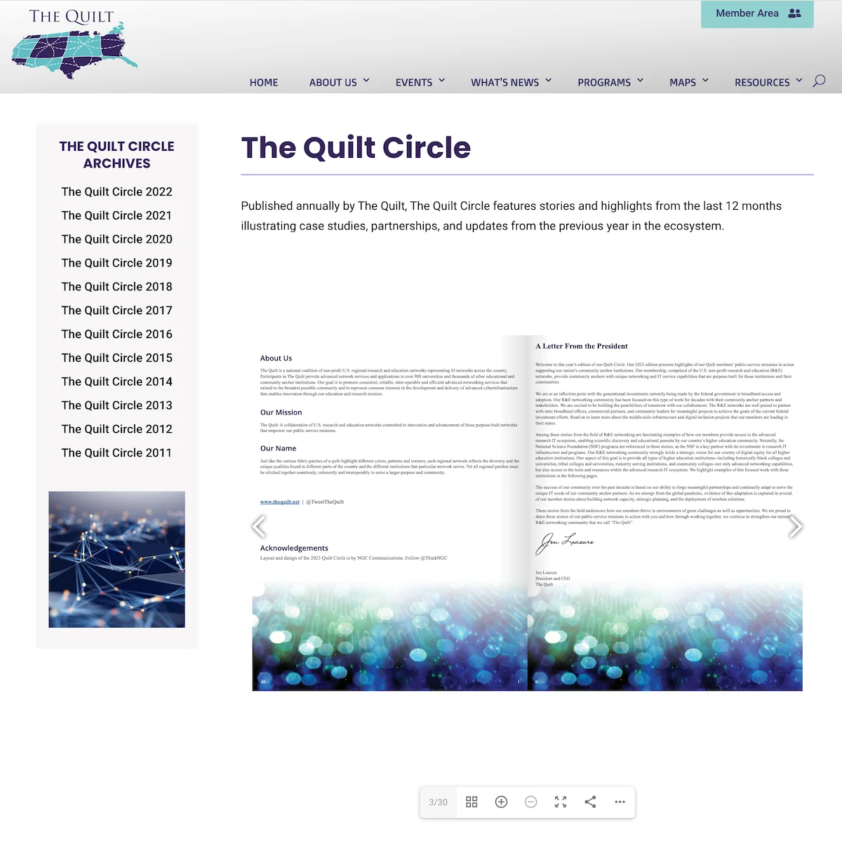 We enhanced their media by adding an interactive magazine display to showcase this year’s Quilt magazine, providing an engaging and immersive reading experience directly on the site. For convenience, we included past years’ covers, which users can click to download as PDFs. This dual approach allows users to easily access current and previous editions, encouraging them to stay on the site longer and explore the rich content available. By offering both interactive and downloadable options, we aimed to increase user engagement and satisfaction.